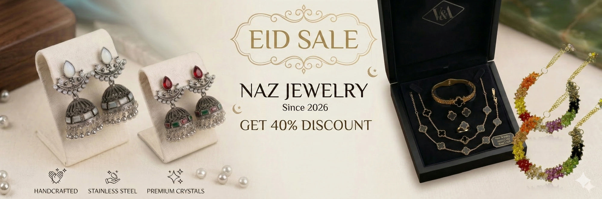 Absolutely. Glow With Naz features exclusive festive jewellery collections designed specifically for Eid-ul-Fitr, Eid-ul-Adha, and the Pakistani wedding season. Our designs blend traditional ethnic styles with modern fashion trends.
